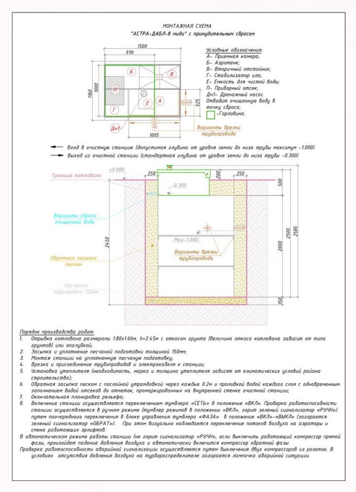 • произвести обратную засыпку песком с утрамбовкой через каждые 0,2 м и проливкой водой с одновременным заполнением водой отсеков до отметок на внутренней части установки;